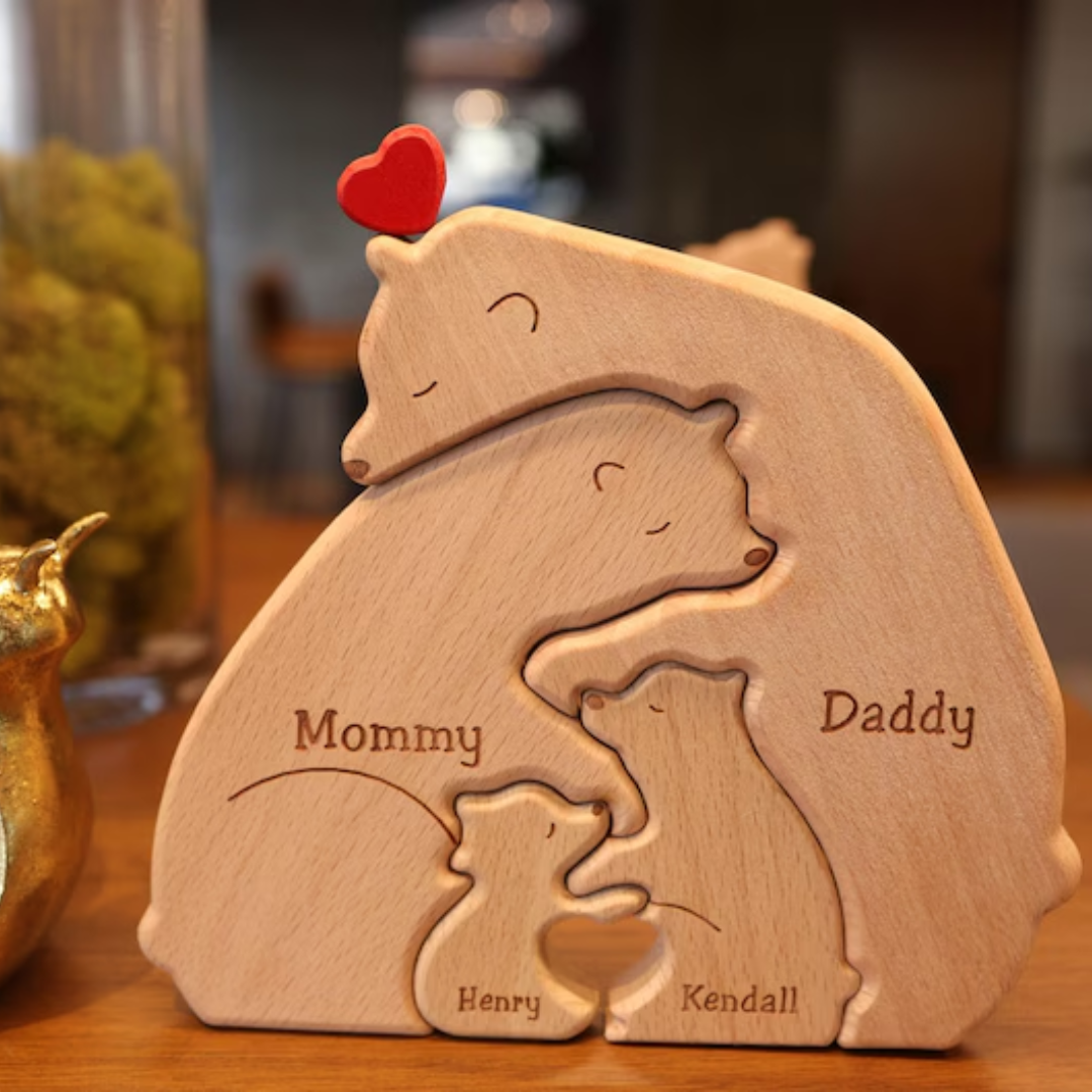 Personalized Wooden Bear Family Puzzle – Engraved Family Name Keepsake