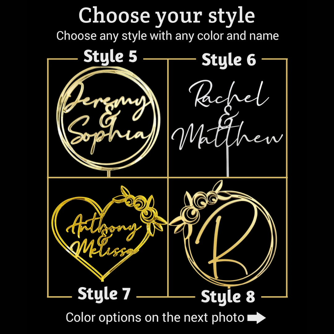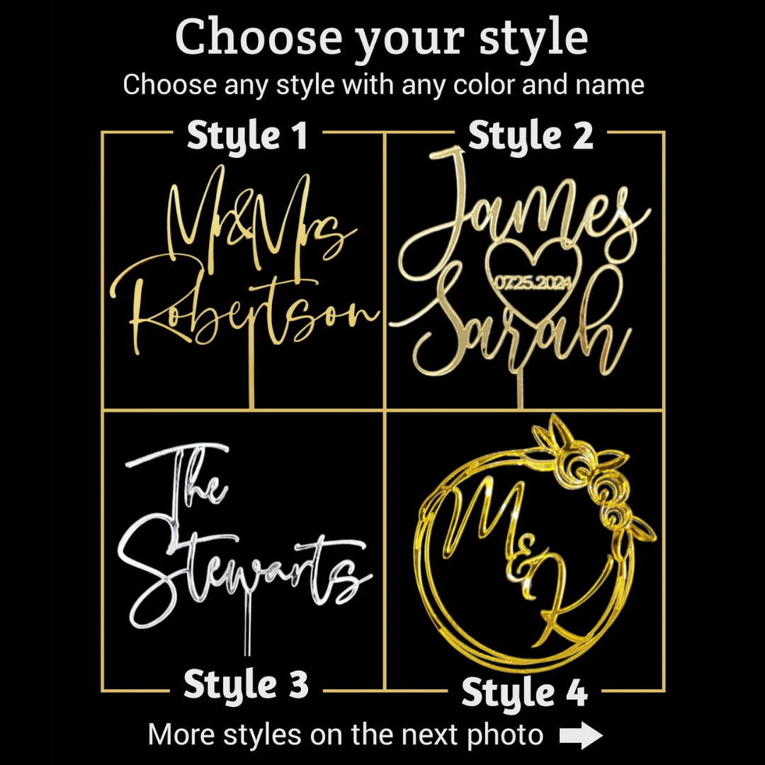Please note that our mirror acrylics are one-sided, and our toppers are designed for cakes ranging from 5 to 8 inches in width.
